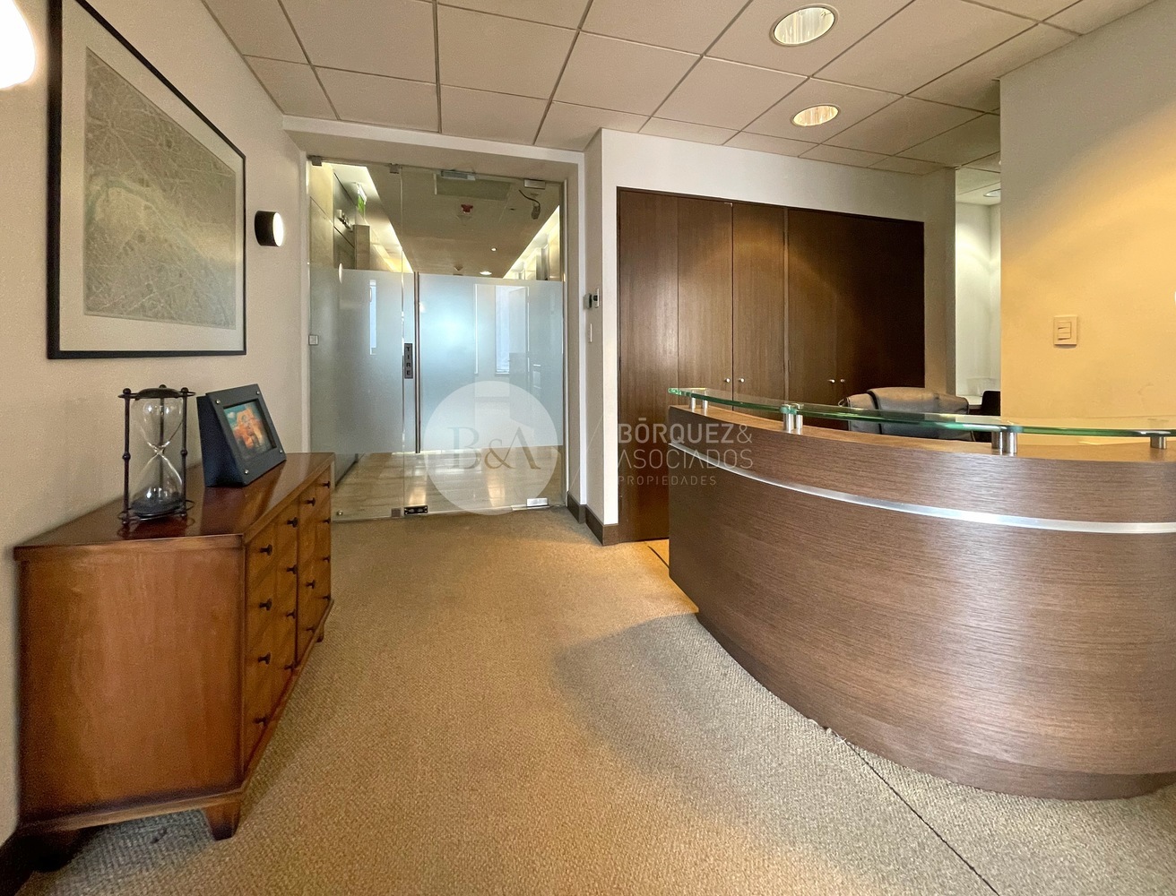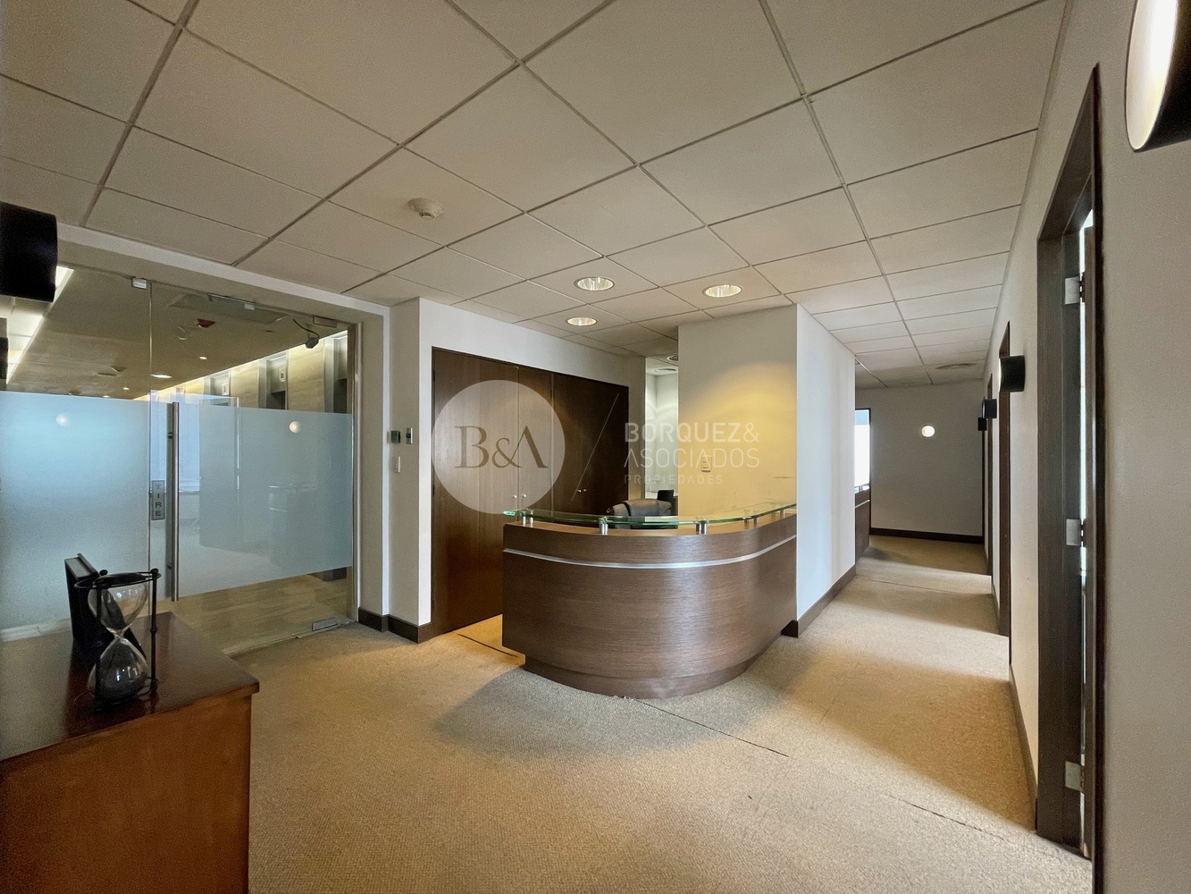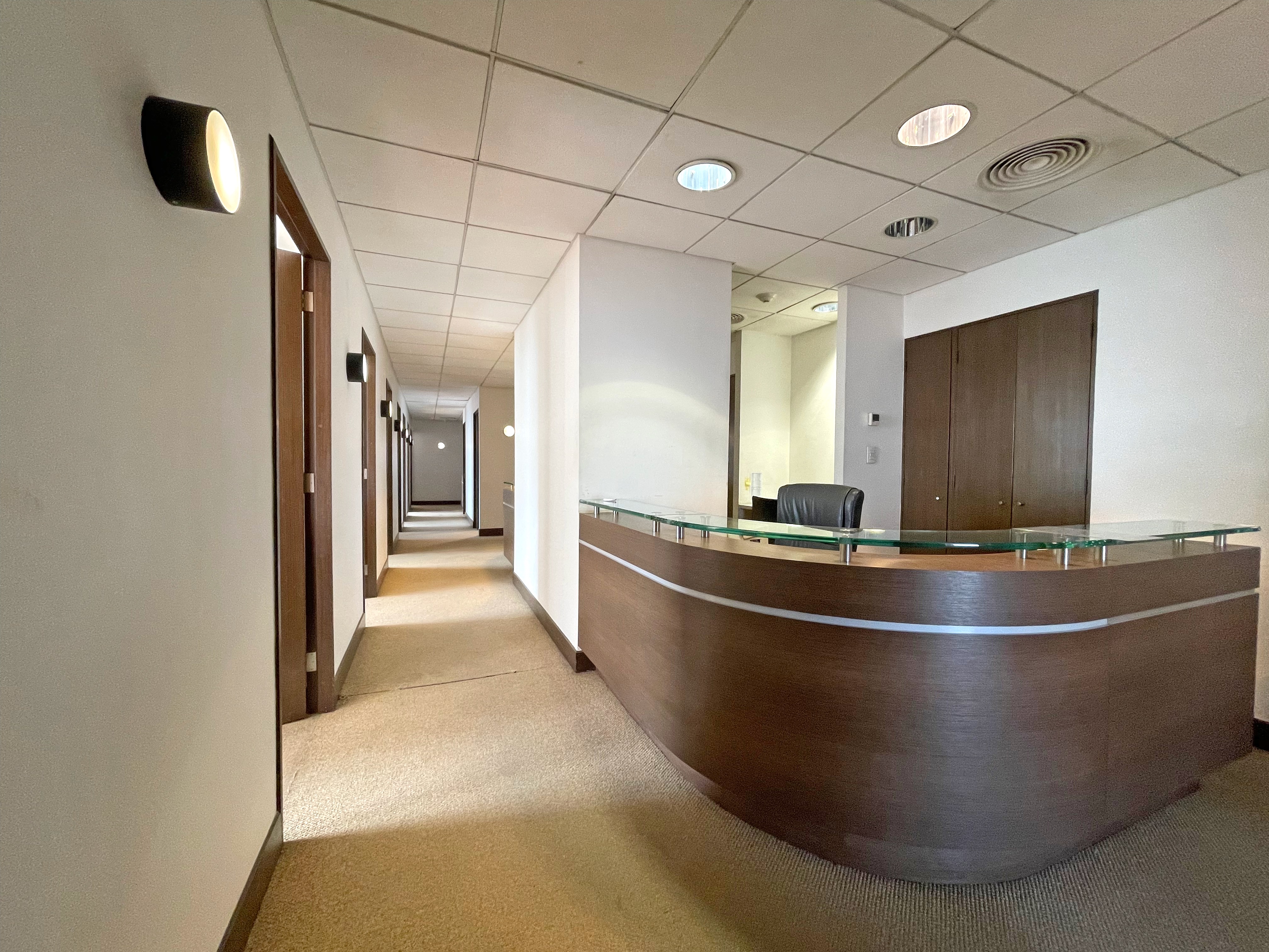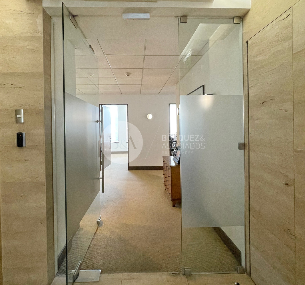 Estupenda oficina en Torre Santa María, 589 metros habilitados, aire acondicionado y/o calefacción. Recepción, varios privados independientes, estaciones de trabajo salas de reunion, baños y kitchenette. 0,45 UF x m2