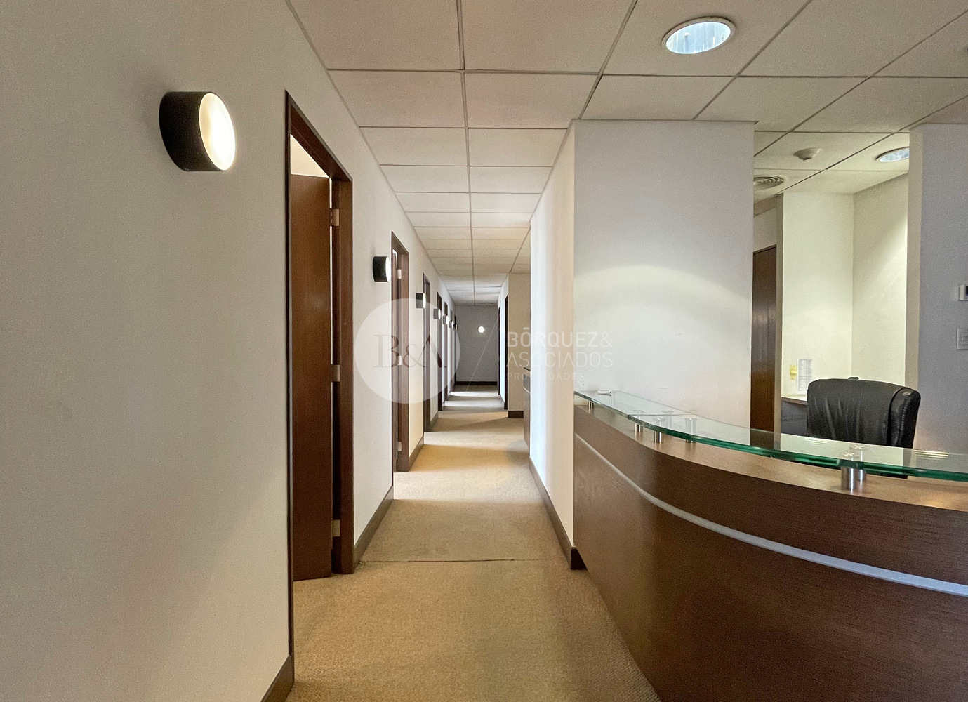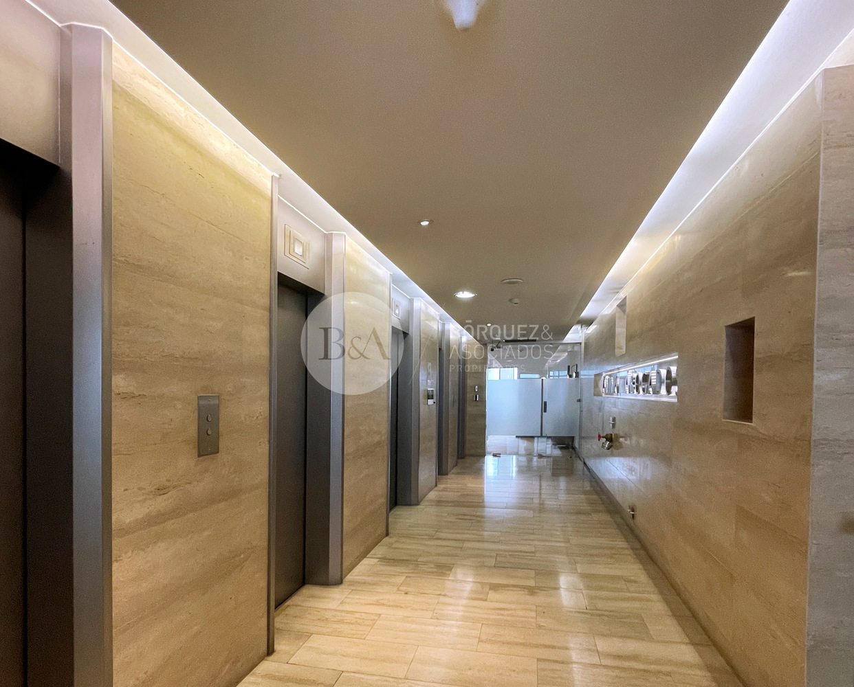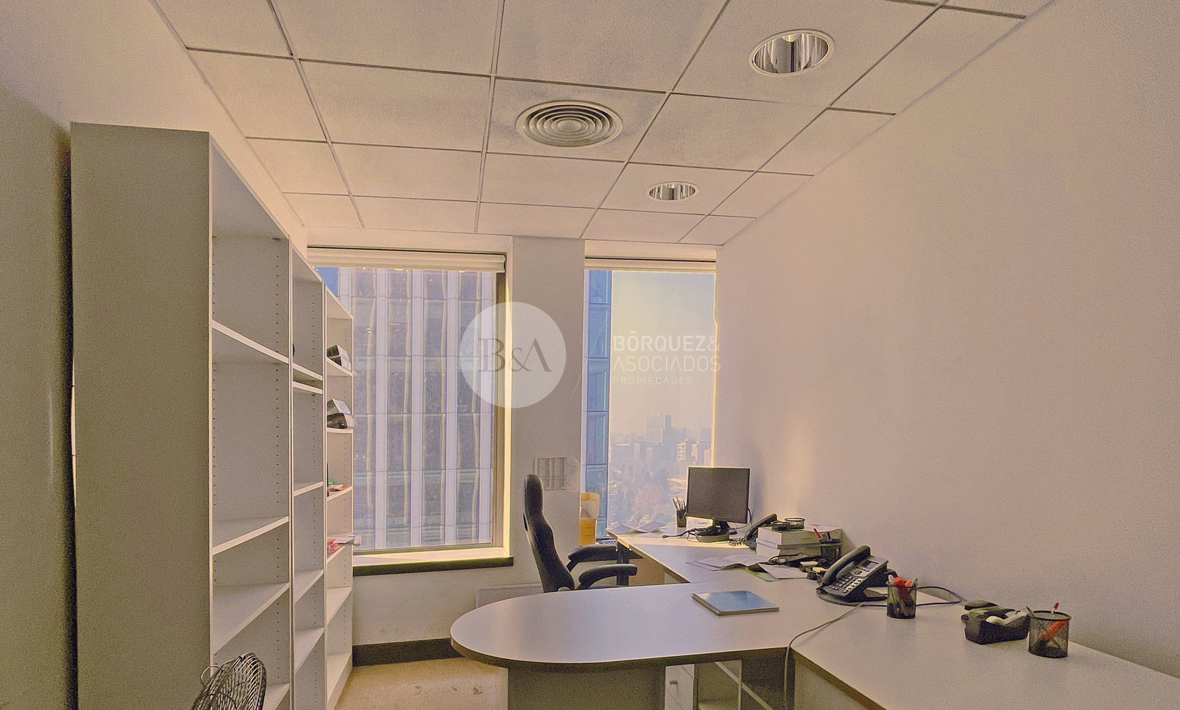 Estupenda oficina en Torre Santa María, 589 metros habilitados, aire acondicionado y/o calefacción. Recepción, varios privados independientes, estaciones de trabajo salas de reunion, baños y kitchenette. 0,45 UF x m2