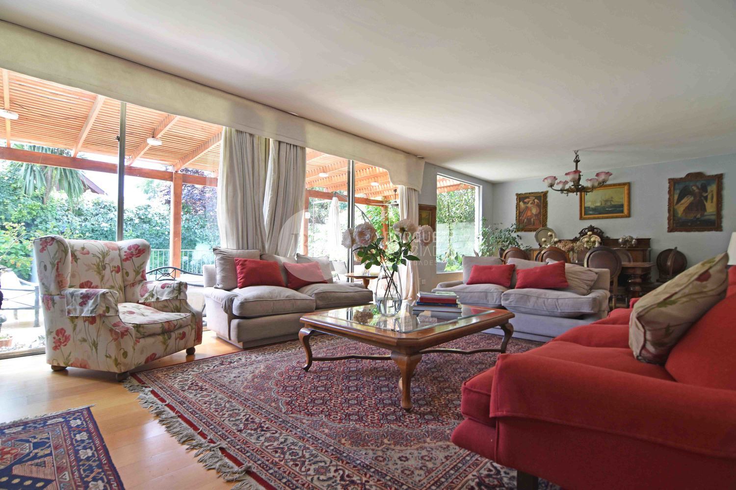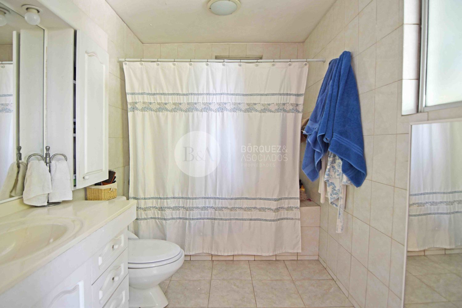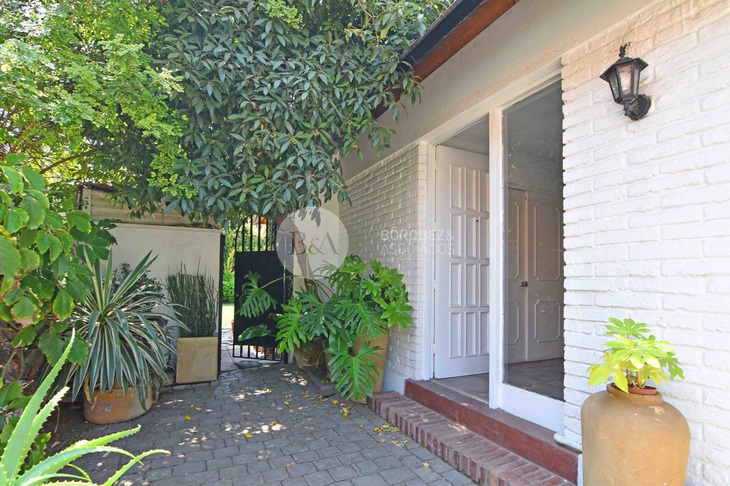Casa con muy buena distribución, en primer piso, hall de acceso, gran living comedor con acceso a amplia terraza con lindo jardín formado con piscina. Dormitorio principal en suite con amplios closets. Cocina de muy buen tamaño completamente amoblada y equipada con dos encimeras a gas, campanas, horno eléctrico y comedor de diario. Dormitorio y baño de servicio muy amplios y logia.