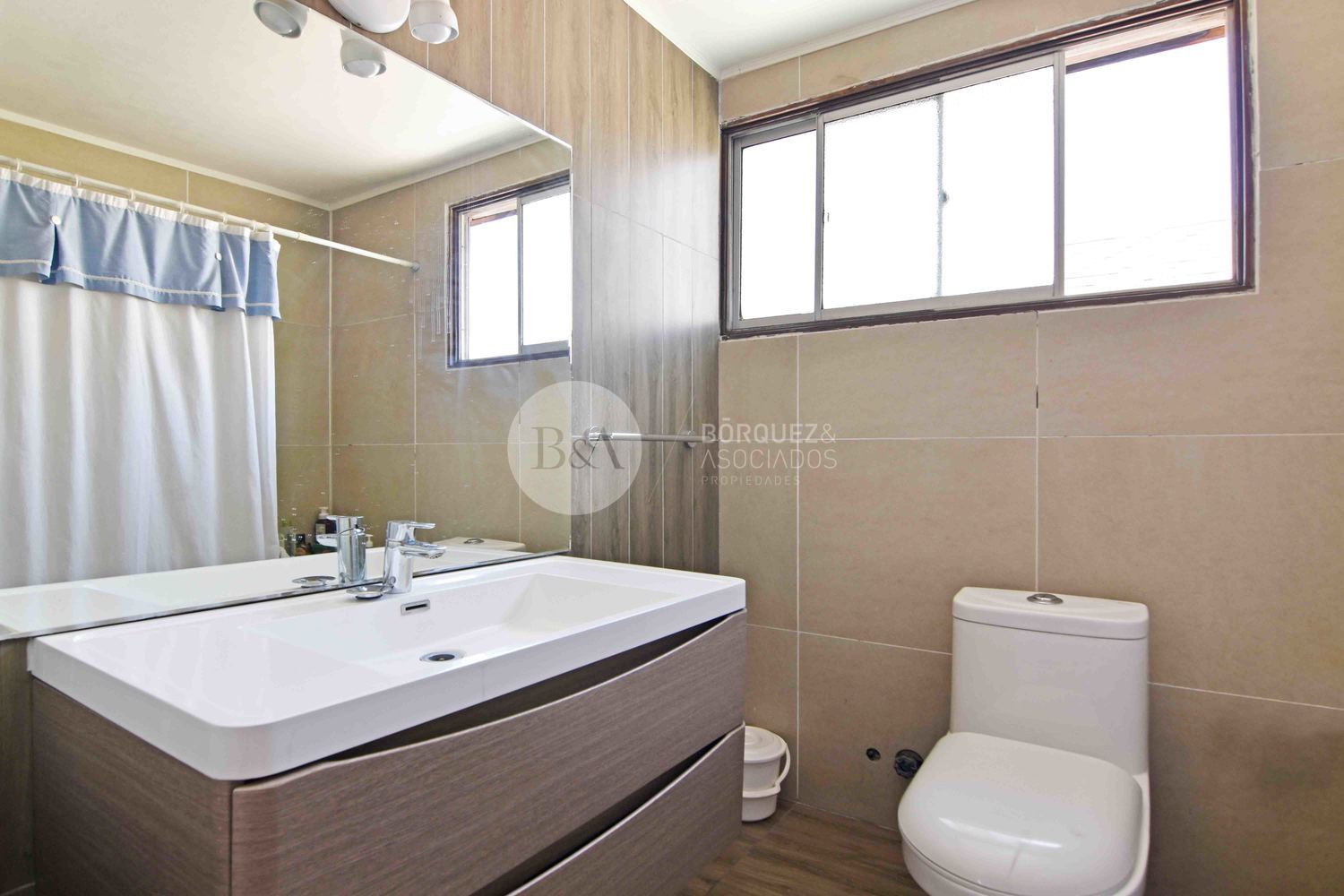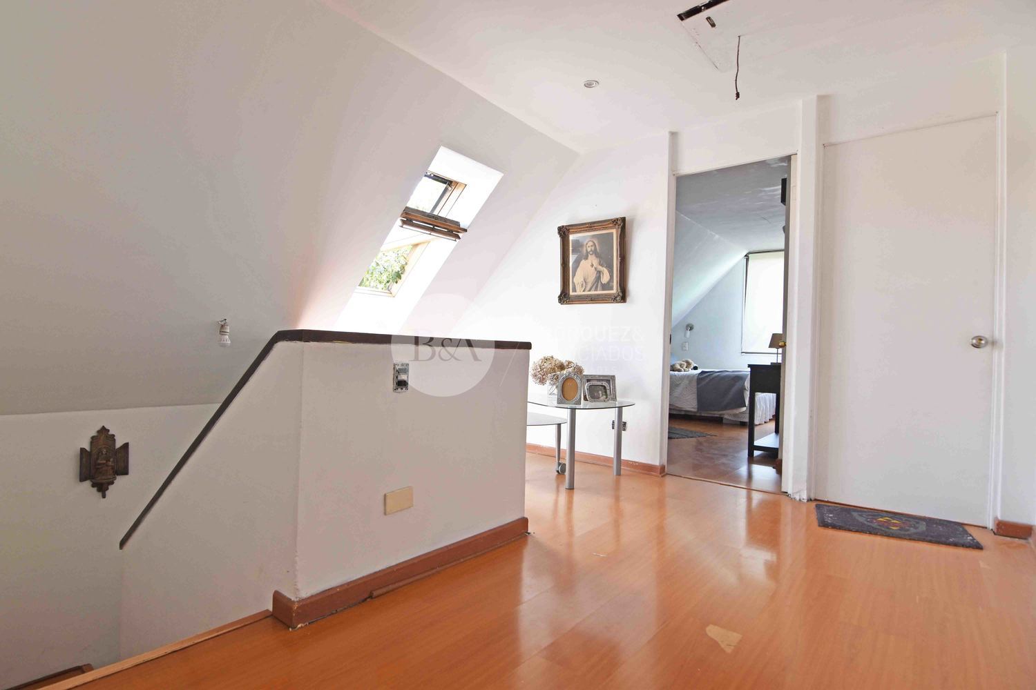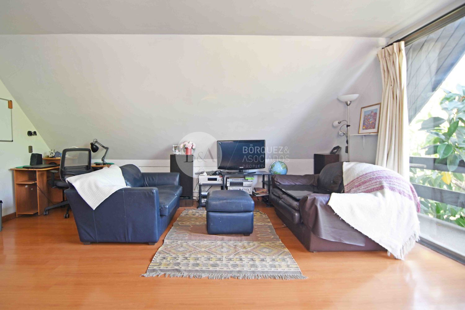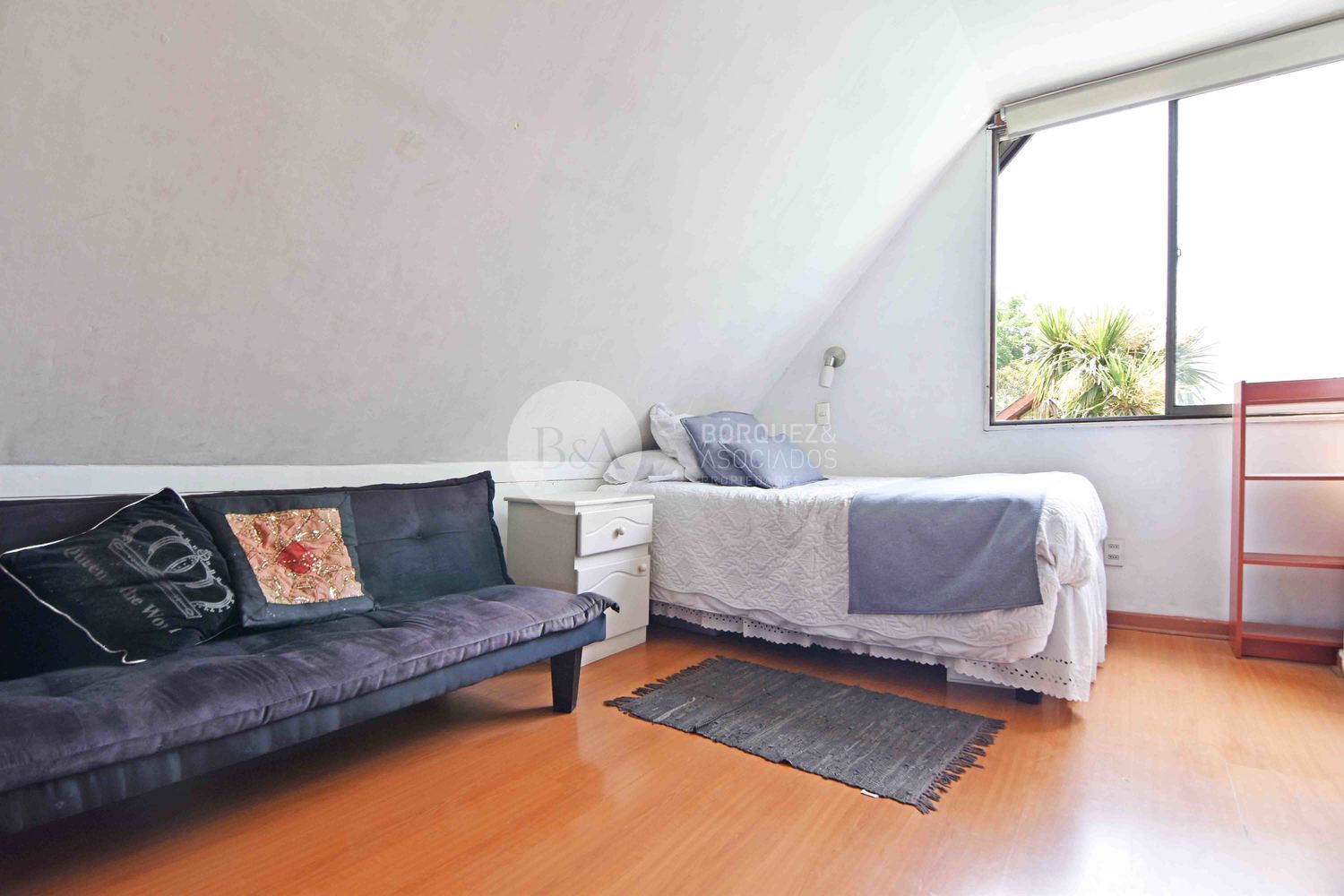 En segundo piso, dos dormitorios grandes que comparten un baño, closet de guardado y gran sala de estar.