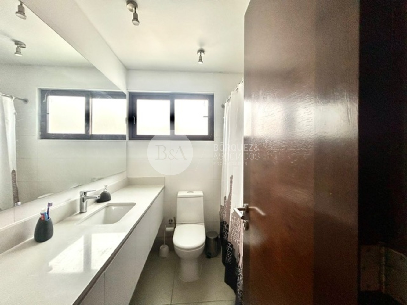 esta casa cuenta con 3 pisos, en el principal encontramos un living comedor amplio con salida a una gran terraza con vista, ideal para compartir en familia o con amigos, amplios espacios y luz natural, baño de visitas, cocina moderna con mesón central y comedor de diario, logia y cuarto de servicio con baño .