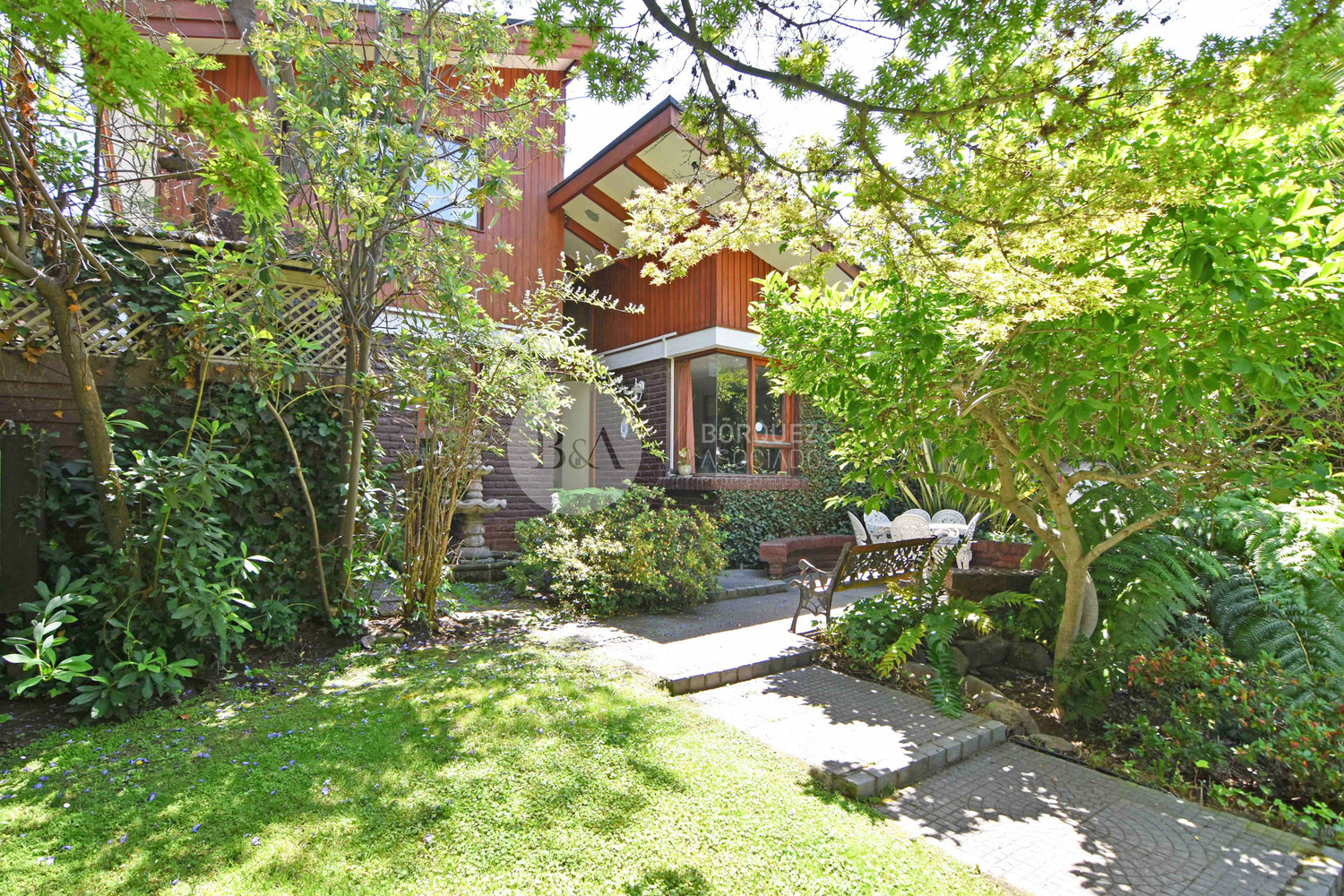 Excelente casa no perimetral con buenos espacios interiores y gran jardin formado en condominio ubicado en consolidado barrio de La Reina.