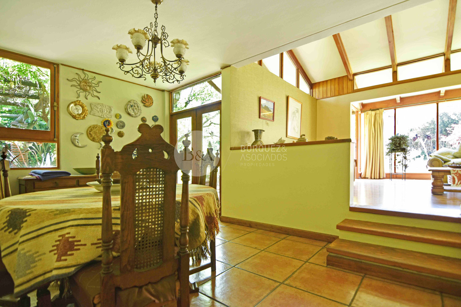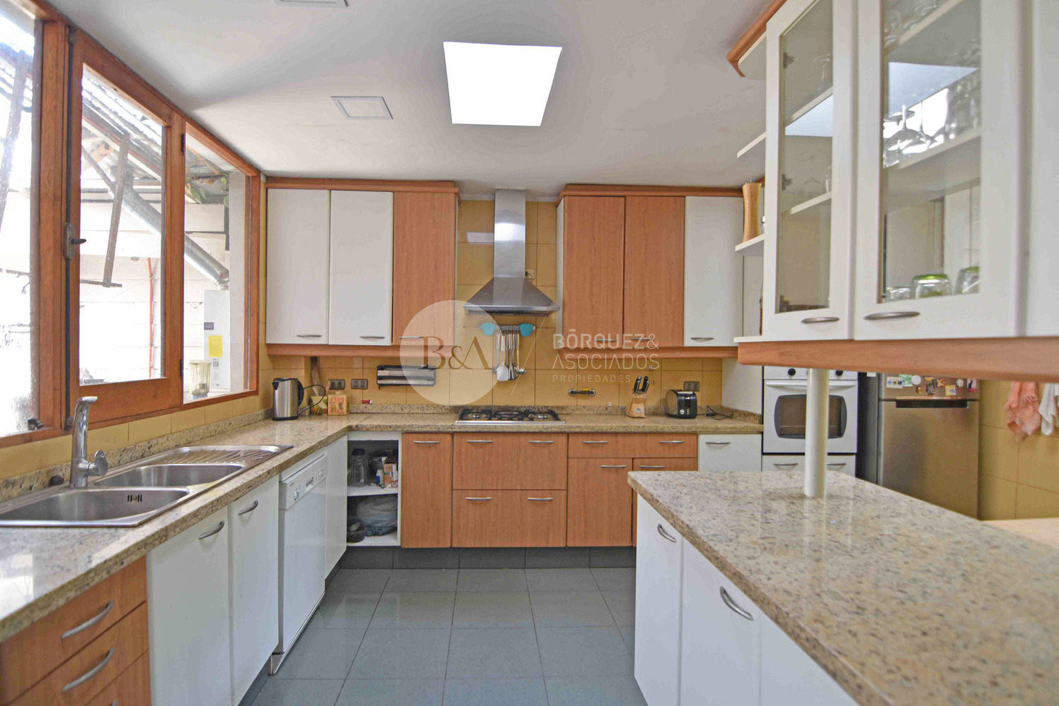 En primer piso encontramos hall de acceso, baño de visitas, escritorio, living y comedor separados. Living de doble altura y con acceso a gran jardin formado con estupendo quincho y piscina.