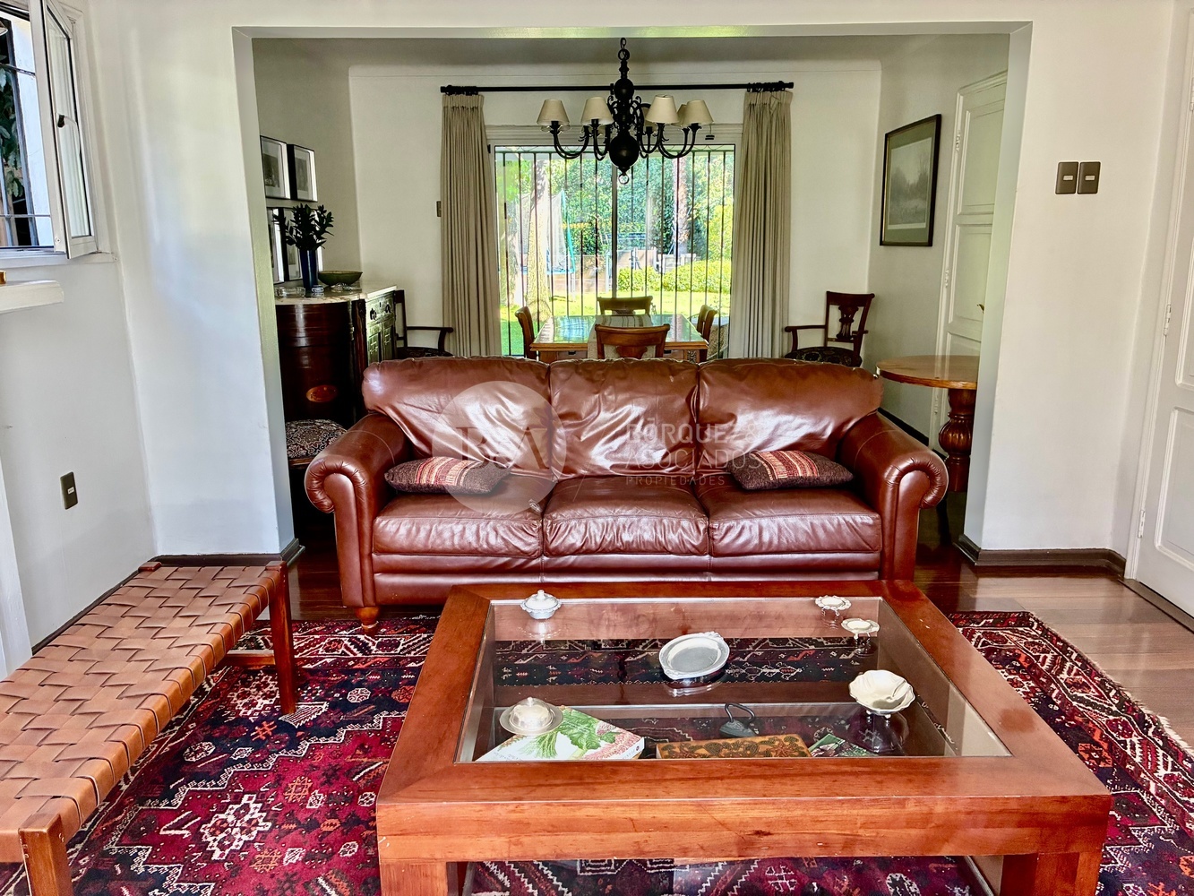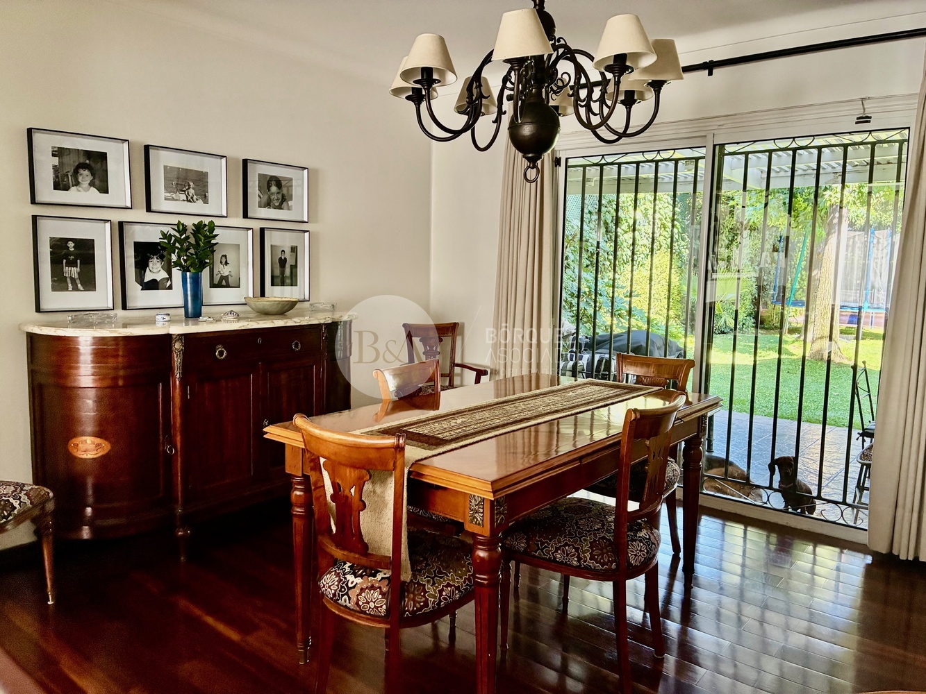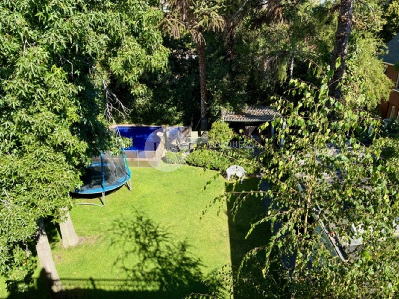 Amplio y precioso jardín con piscina con bomba de calor y quincho, además de una terraza a la salida del living - comedor.