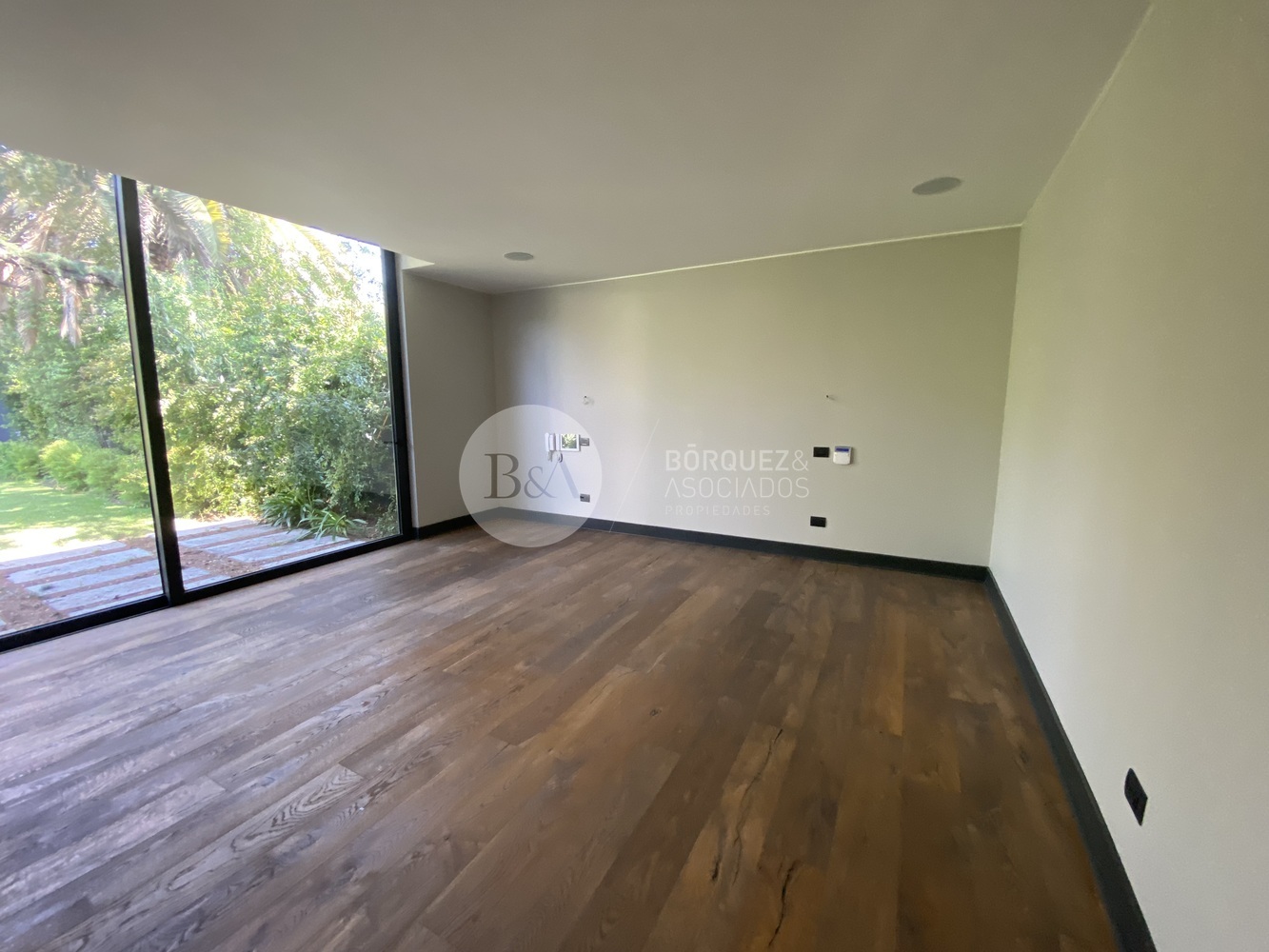 En primer piso: Luminoso hall de entrada de doble altura, baño de visitas, dormitorio principal en suite con escritorio privado independiente y walk in closet. Living y comedor con salida a terraza techada, quincho integrado con campana y muebles y jardín formado con riego automático. Se entrega con paisajismo y piscina. Cocina con family room integrado y con salida a la terraza. Dormitorio y baño de servicio, loggia y patio de servicio techado.