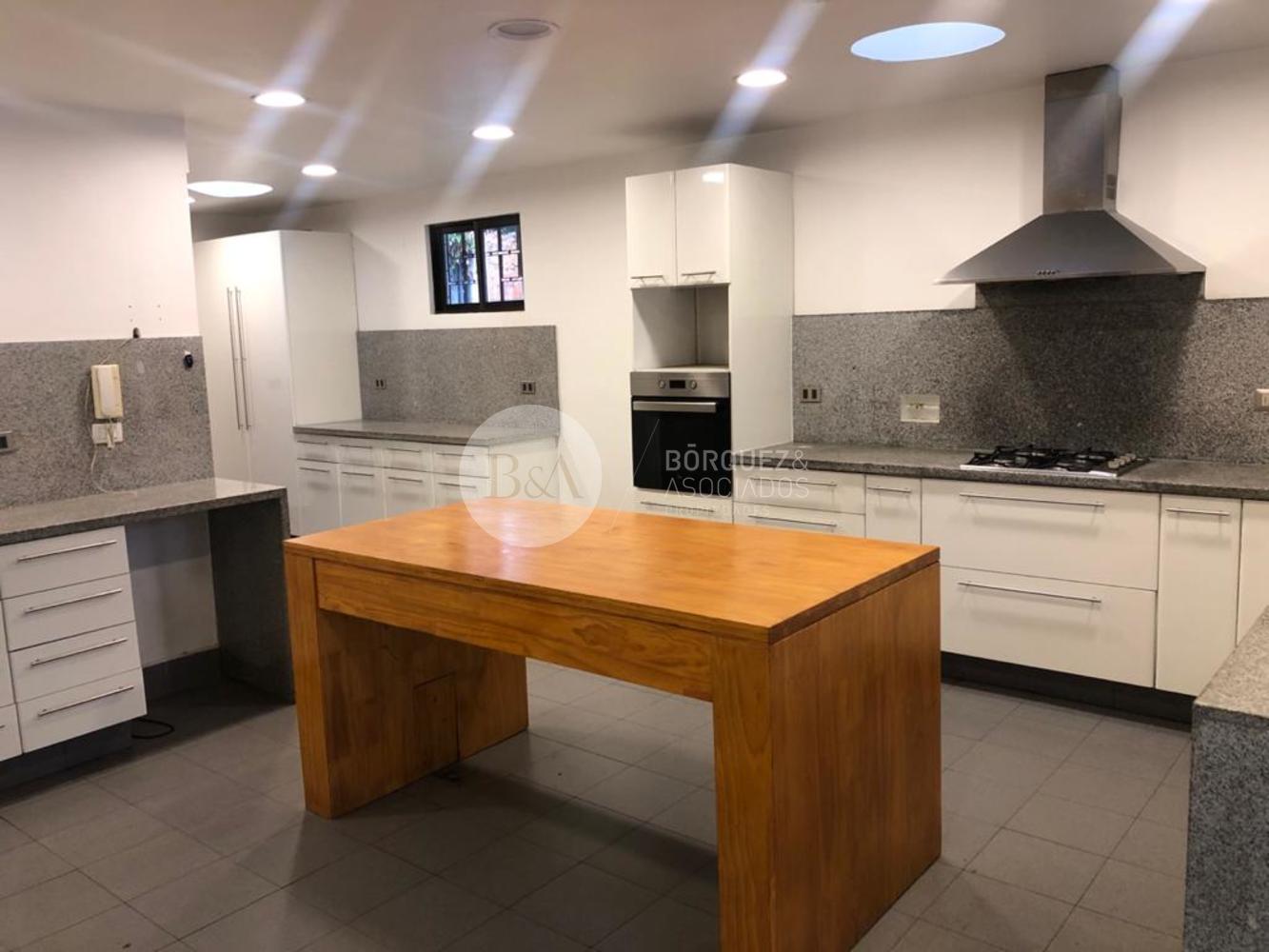 Hall de entrada, baño de visita, amplio living, el que se puede convertir en 2 espacios, comedor independiente con salida al jardín. Cocina remodelada con comedor de diario de grandes dimensiones. Sala de estar con salida a terraza con la piscina. Tres dormitorios, dos baños, más el dormitorio principal en suite con salida a un patio duro. Logia, dormitorio, baño y patio de servicio. Estacionamiento para cuatro autos y bodegas.