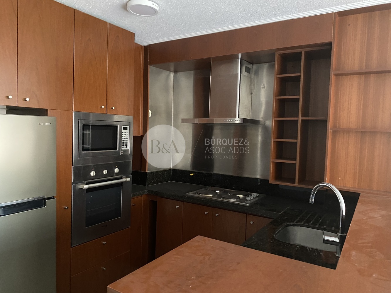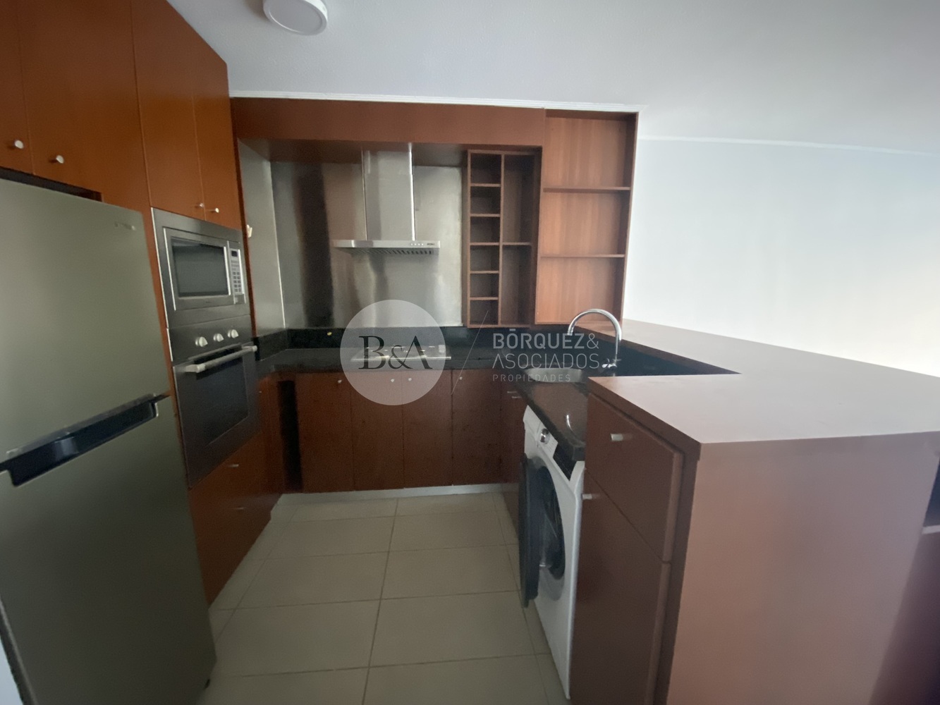- Cocina integrada totalmente equipada totalmente con encimera horno eléctrico, campana y lavadora de ropa