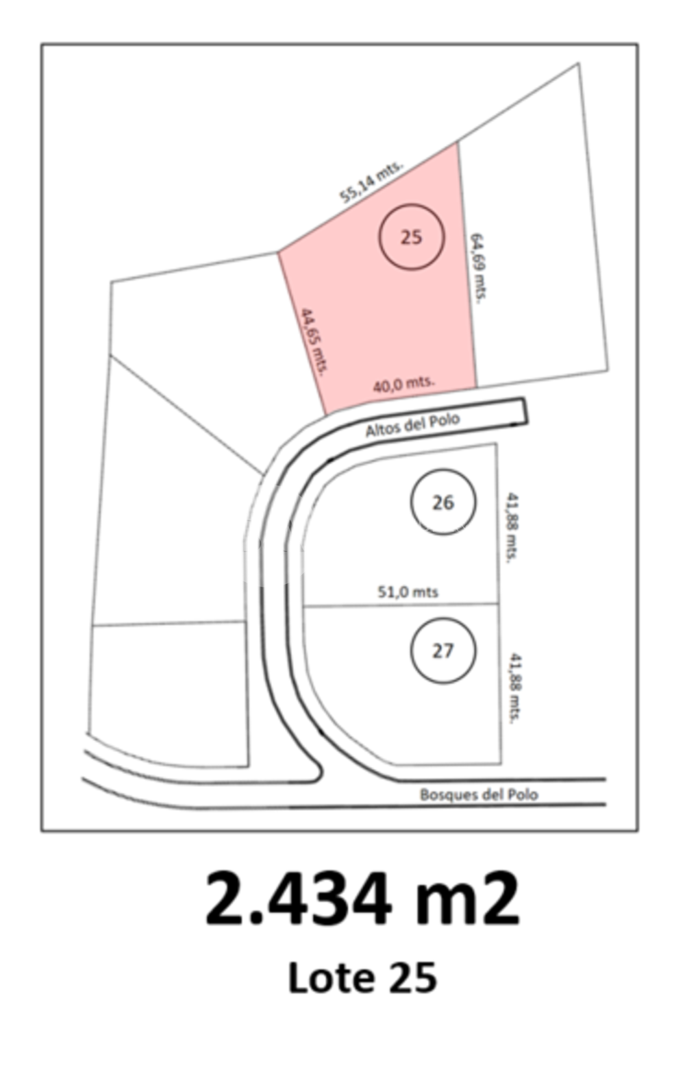 La diferencia del lote 25 es que es un terreno que tiene una forma regular y una gran vista a todo Santiago, tiene una pendiente que no requiere obras de contención importantes, lo anterior se puede ver en las casas vecinas y es la principal diferencia con los terrenos que se están vendiendo en otros loteos como Cumbres de Santa María de Manquehue y en lo Curro que requieren inversiones que son equivalente a 2 ó 3 UF/m2 de terreno.