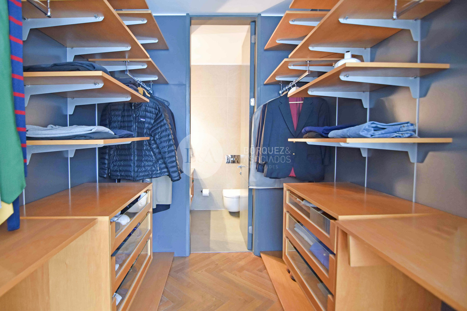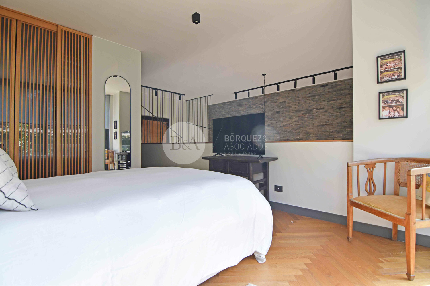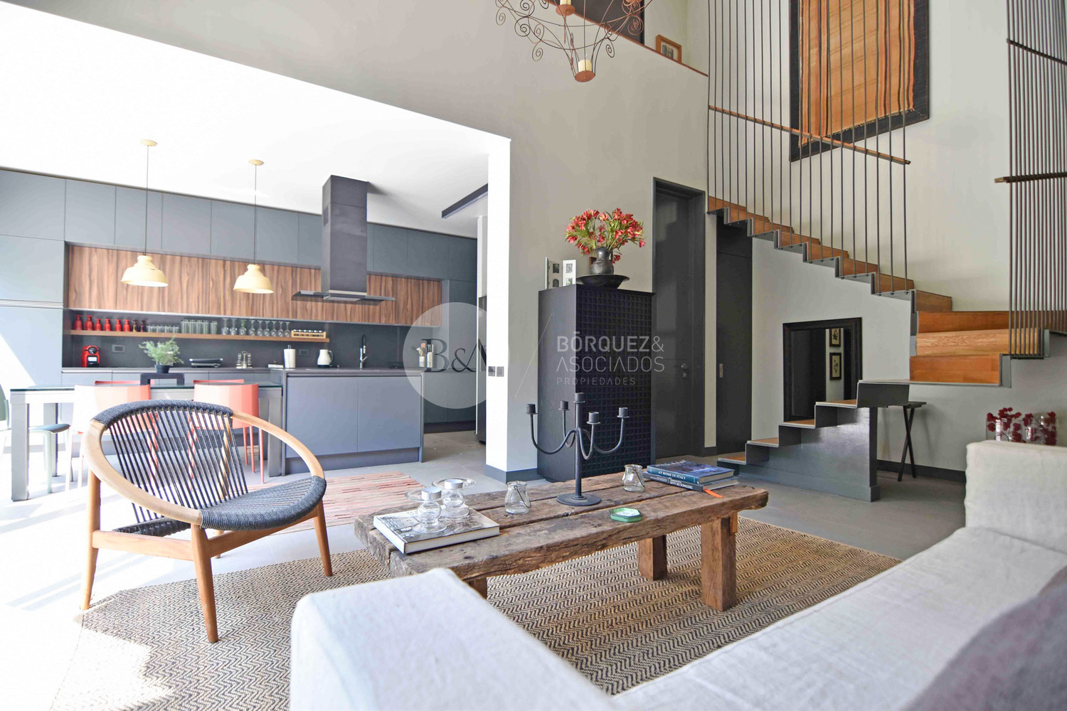 Linda escalera que nos lleva a un segundo piso con un dormitorio en suite, integrado al departamento. gran walking closet y un baño completo.