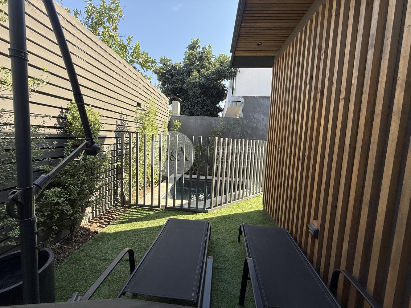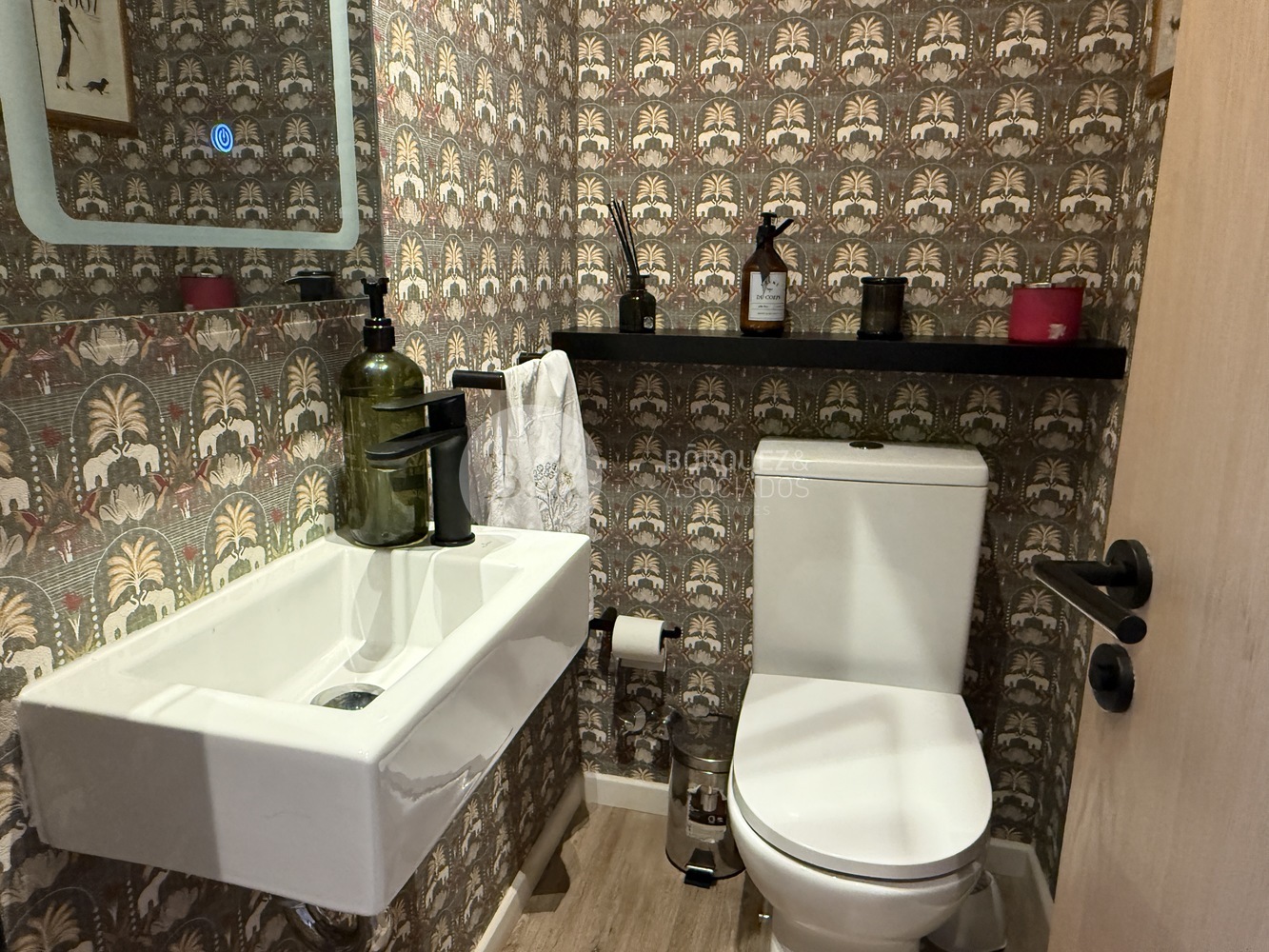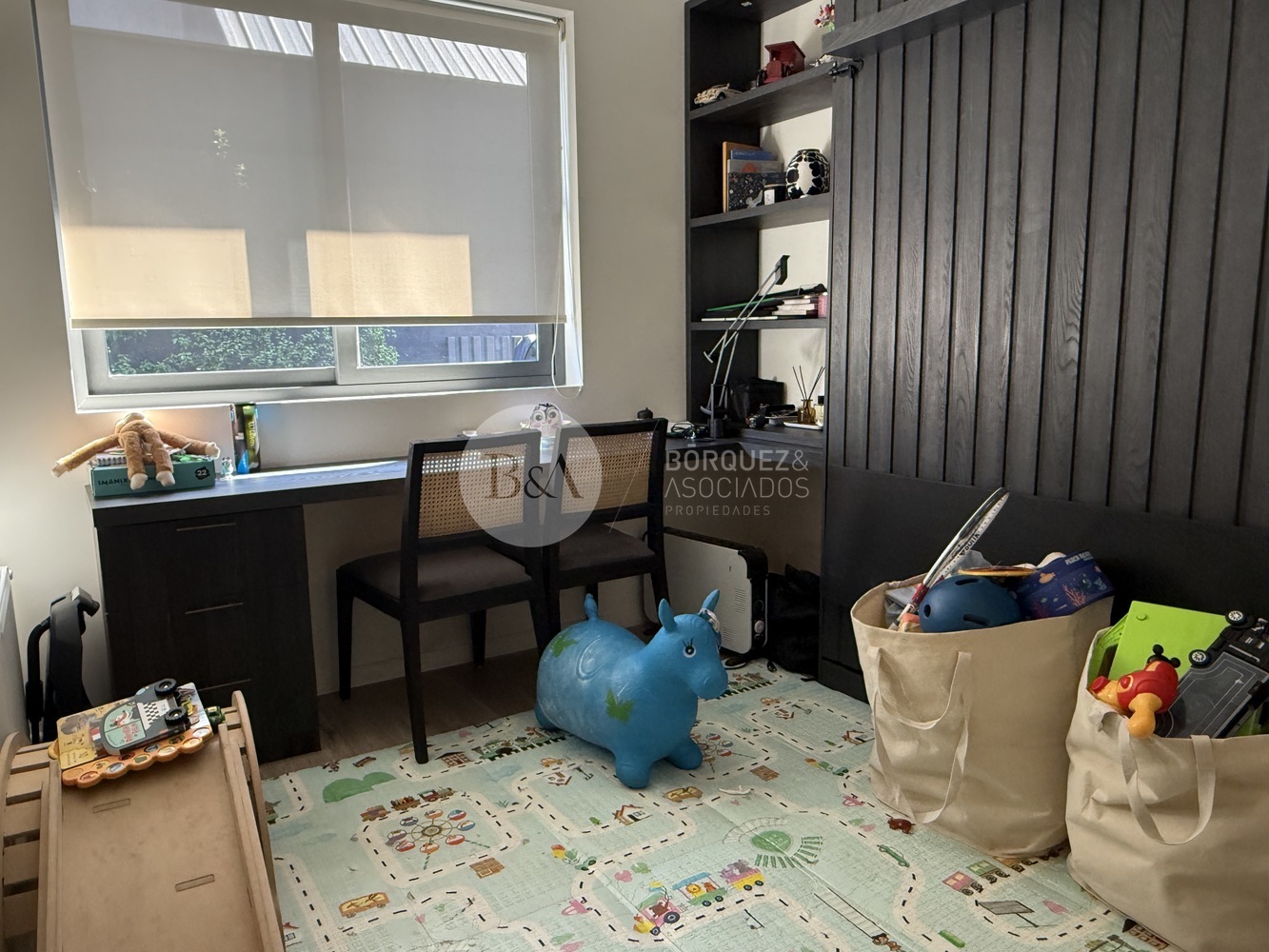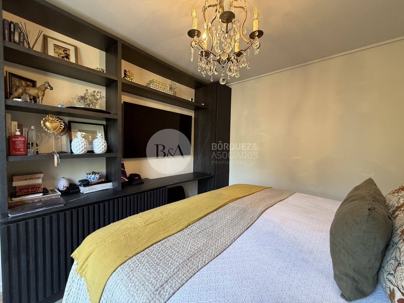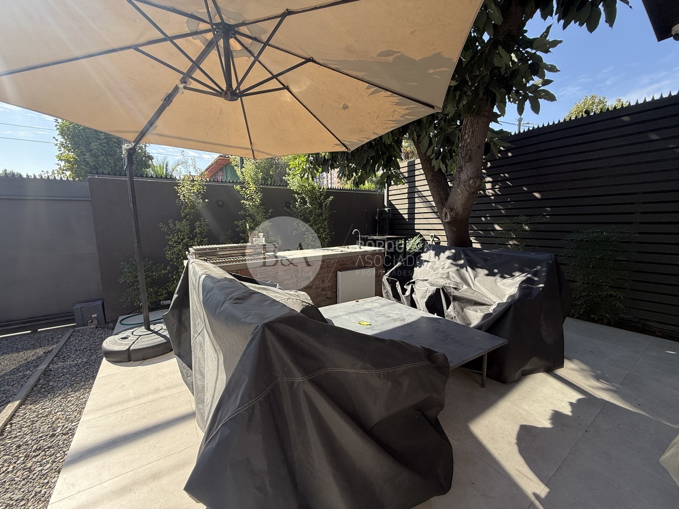 En el exterior destaca una amplia terraza con quincho y piscina, además 2 estacionamientos para autos.
