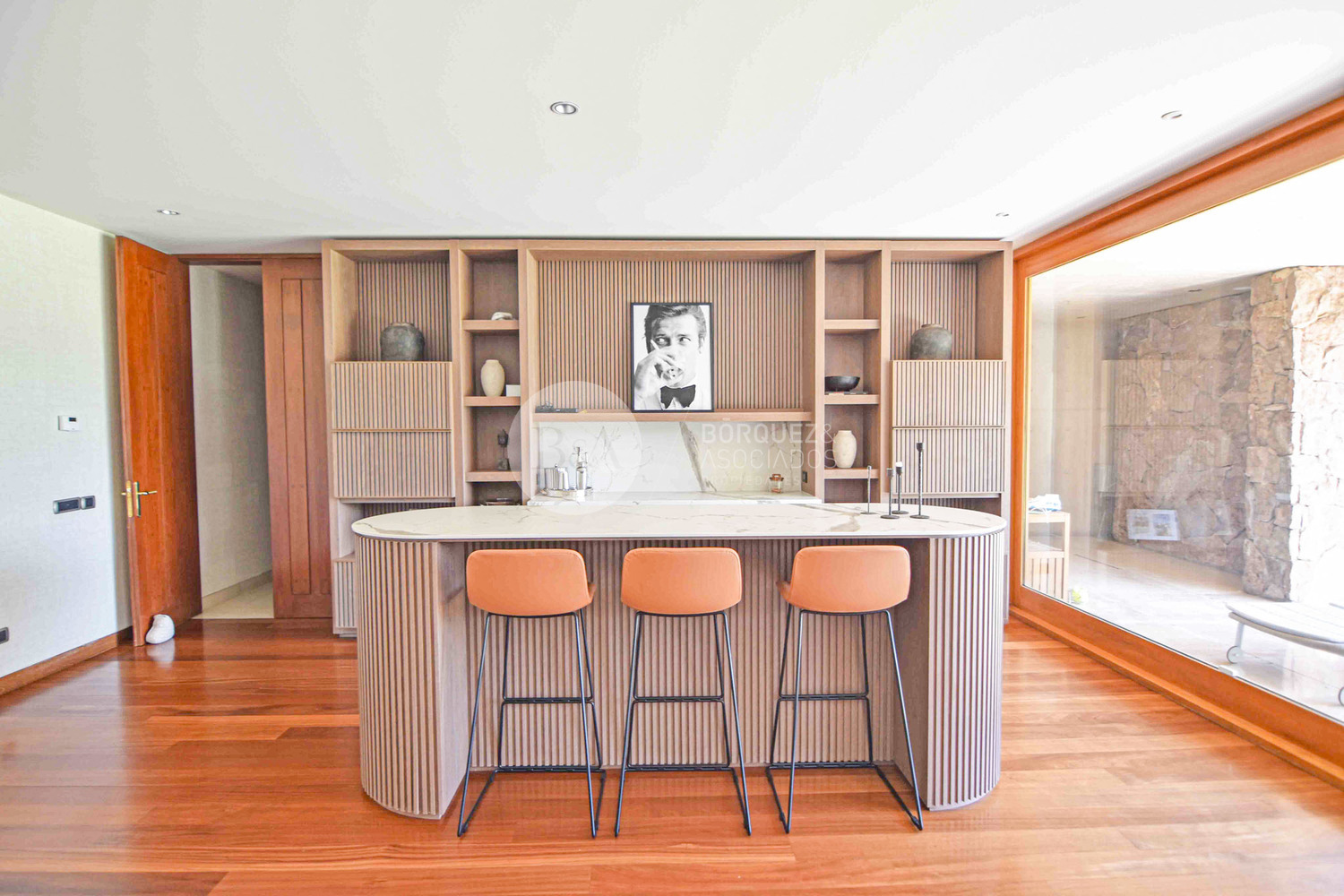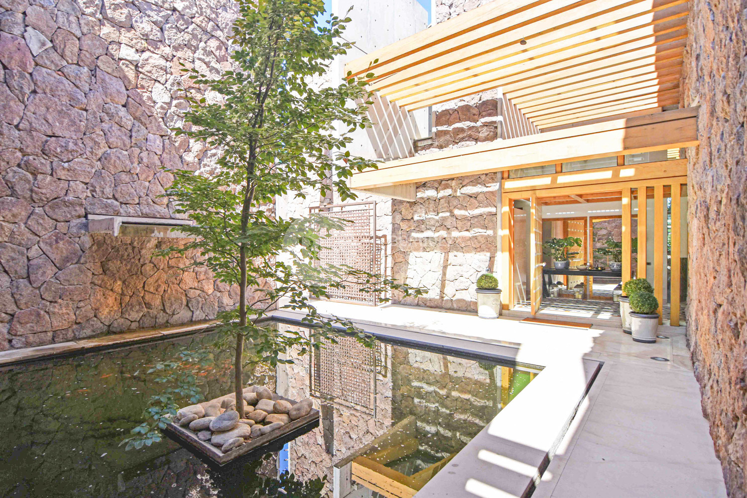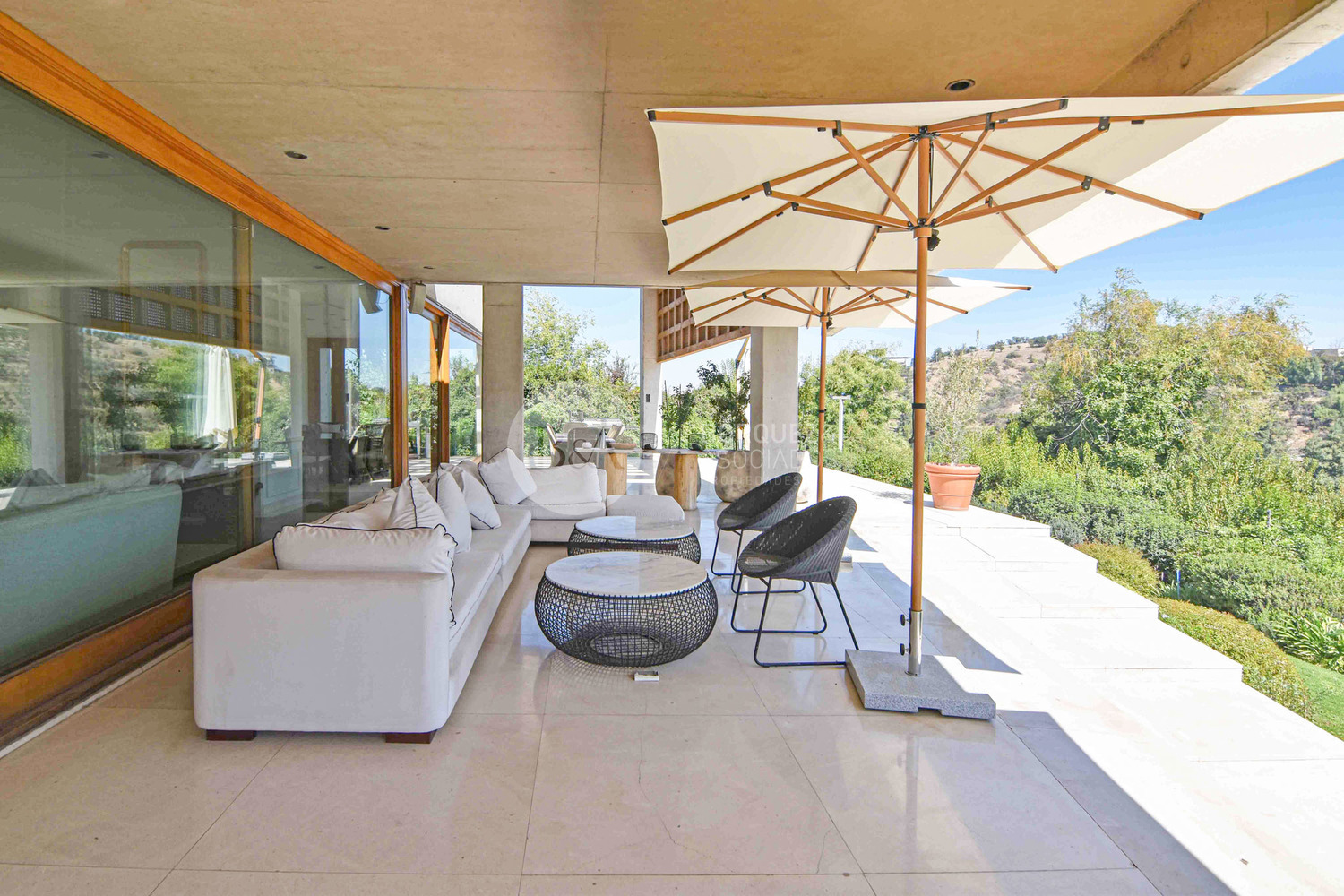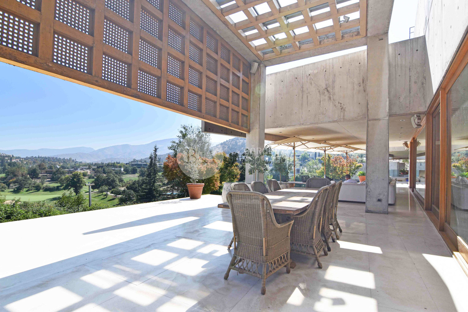 Destaca su imponente acceso completamente adoquinado, con pileta y cascada, además de amplios y luminosos espacios interiores: