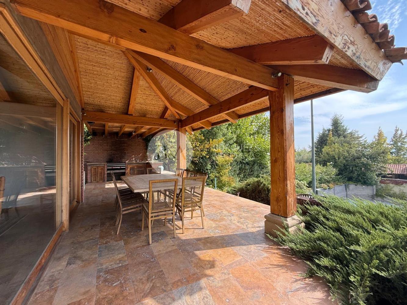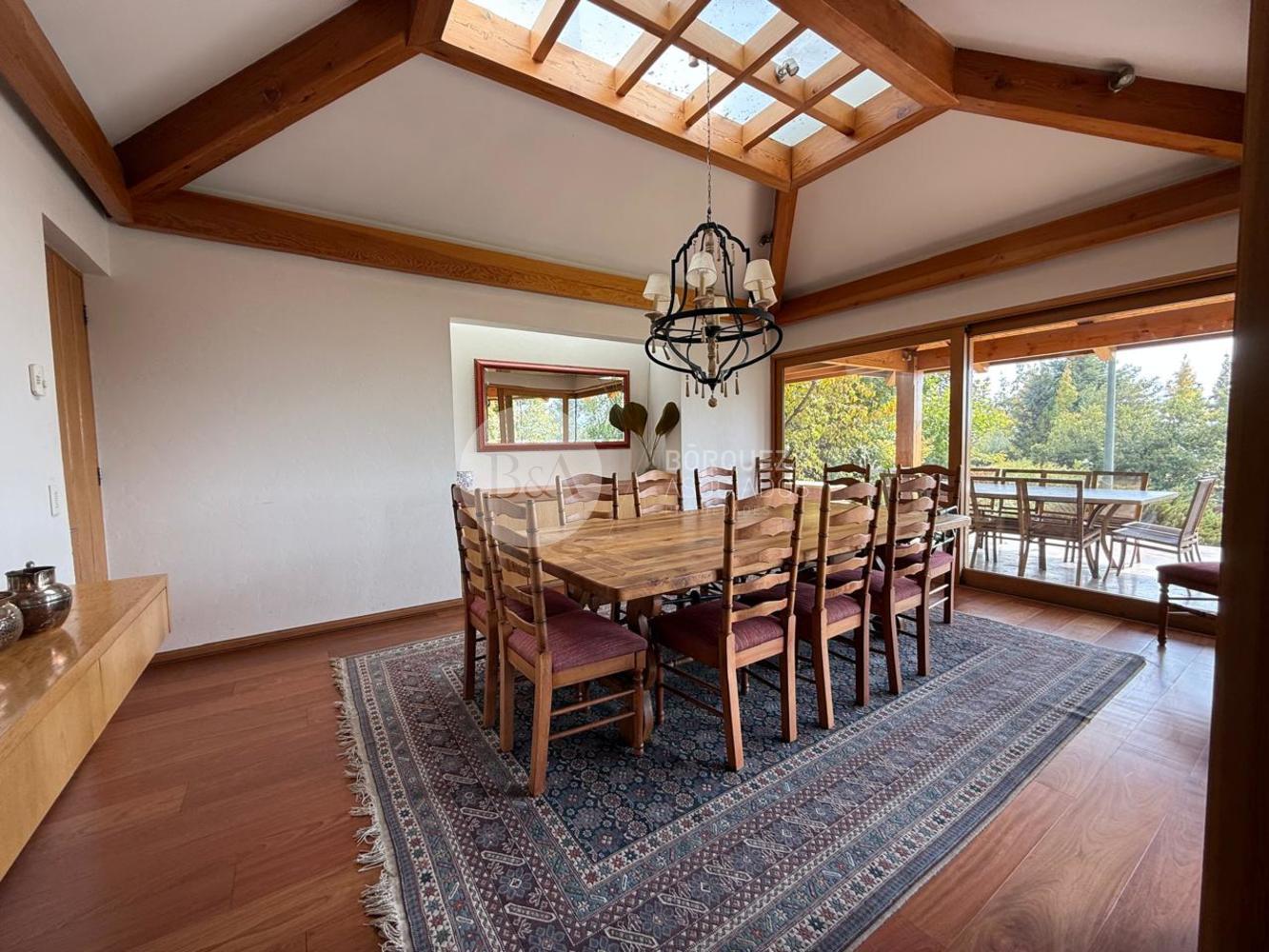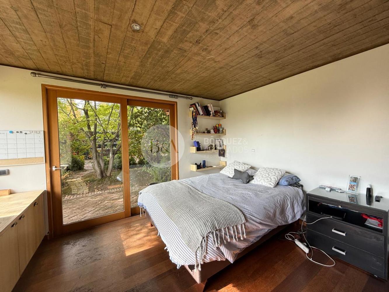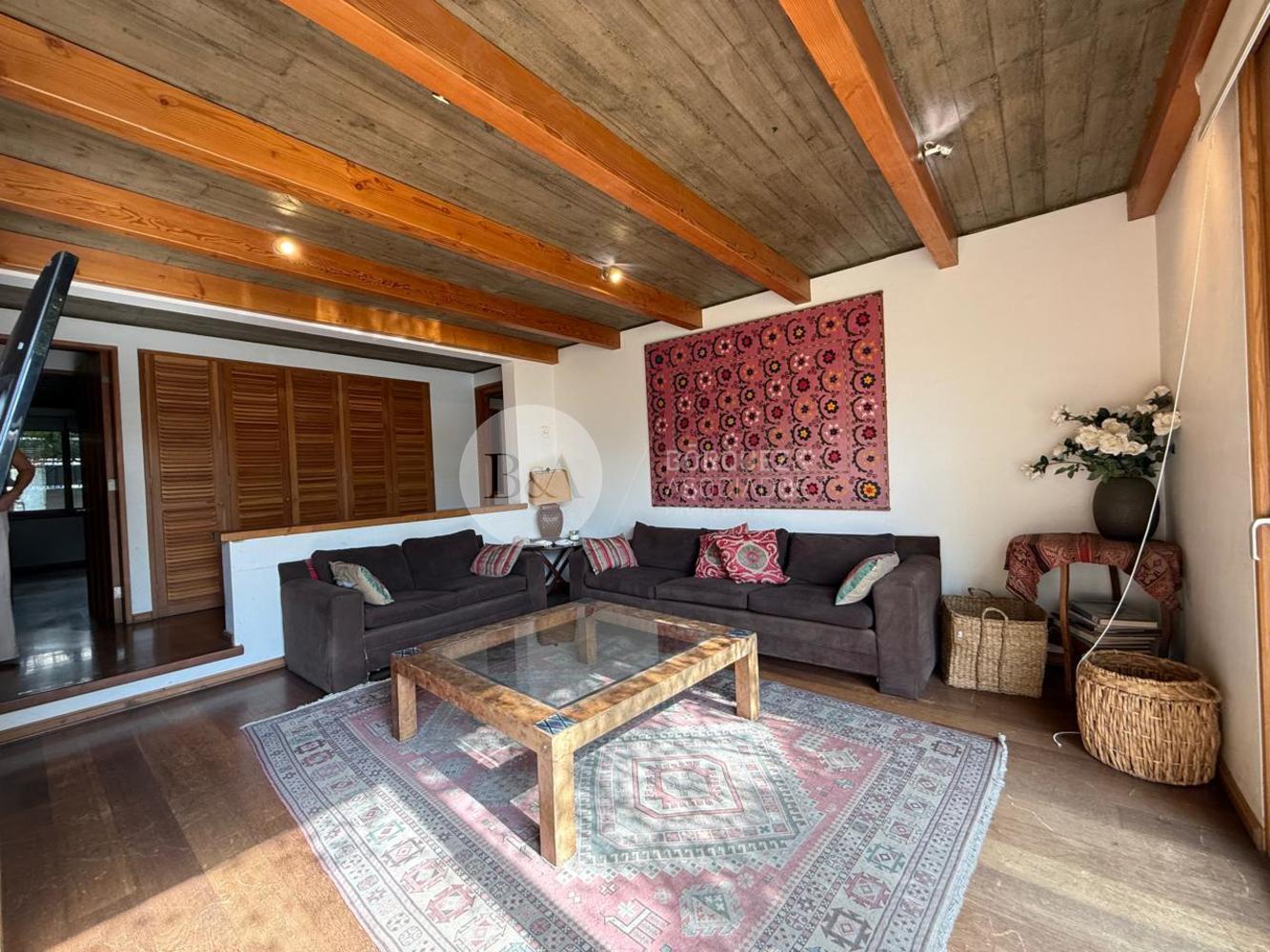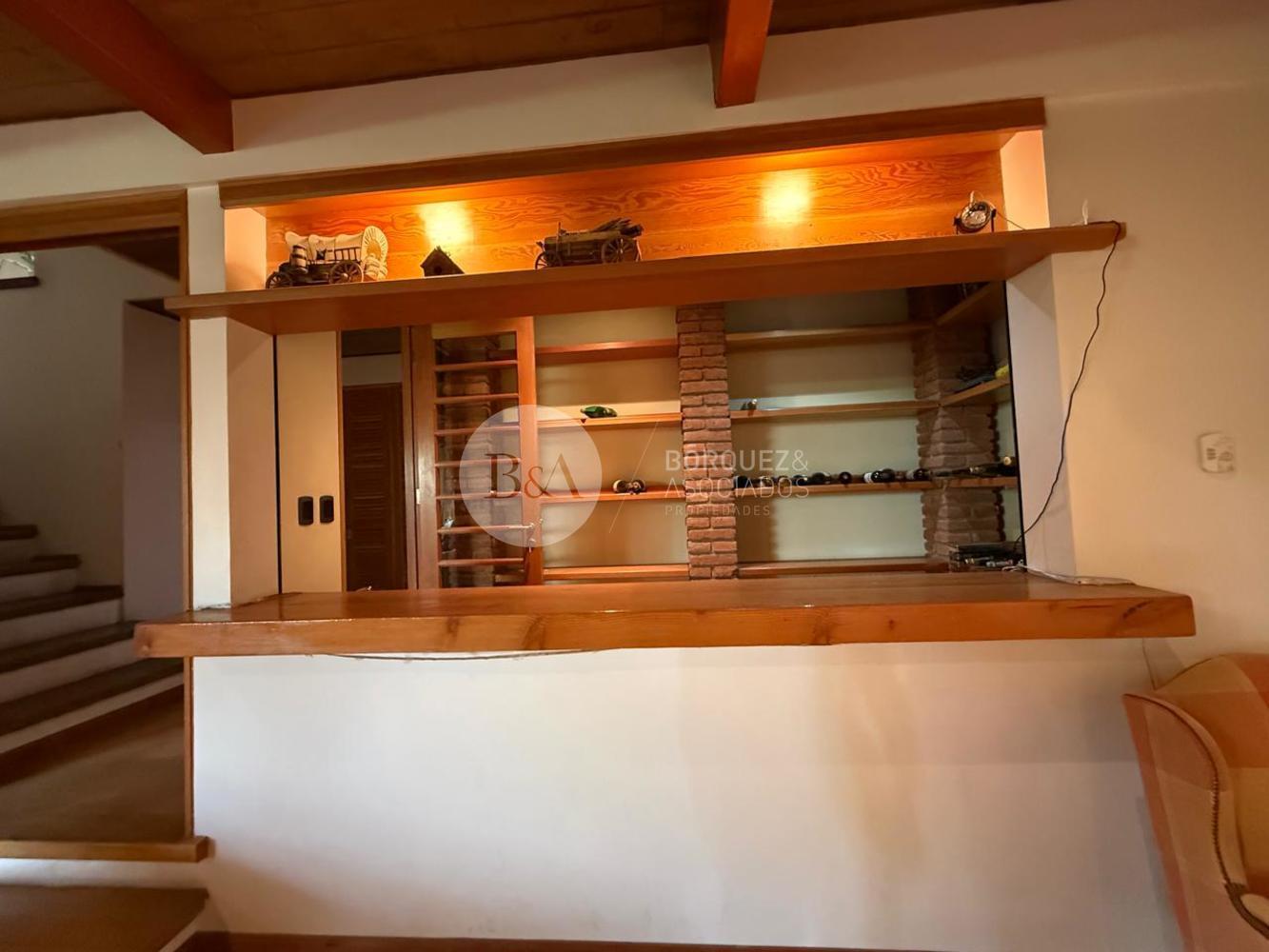 Cuenta con hall de entrada de doble altura, living y comedor separados con techo de bambú, ambos con salida a una gran terraza techada y jardín formado. Los ventanales se abren completamente, integrando los espacios. Además, tiene quincho techado.