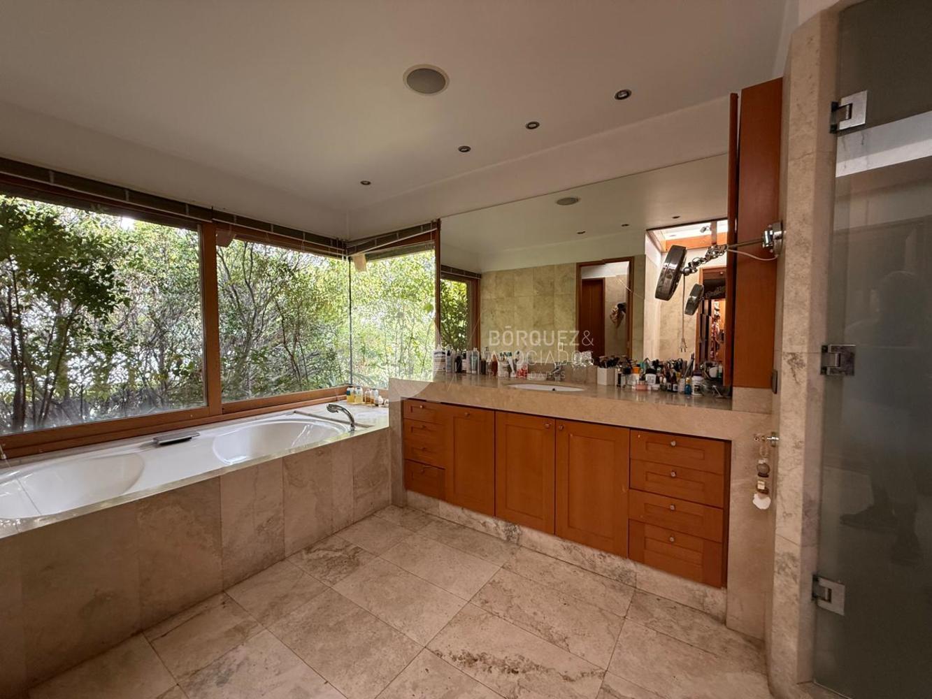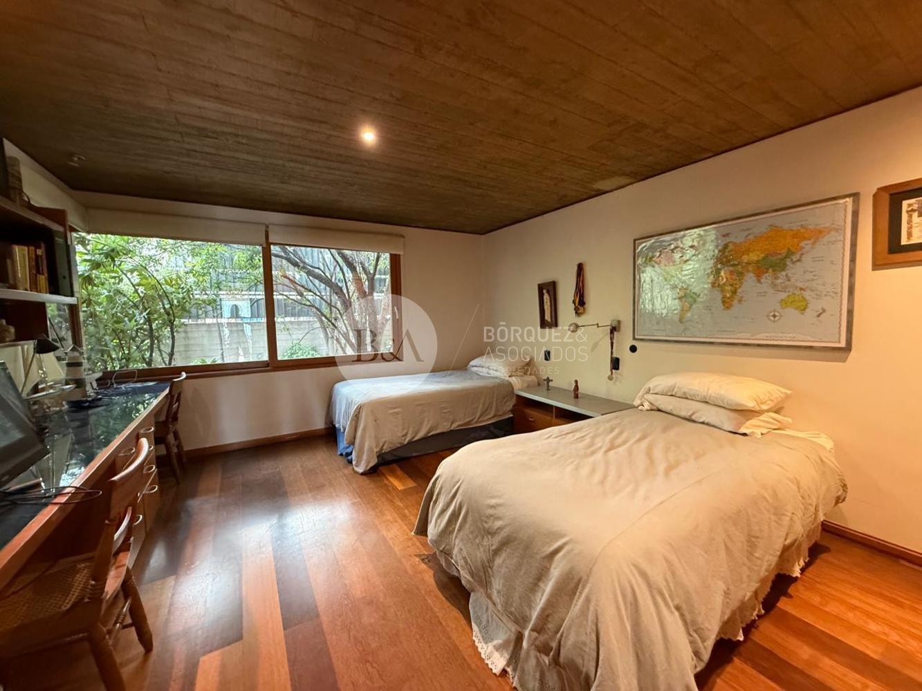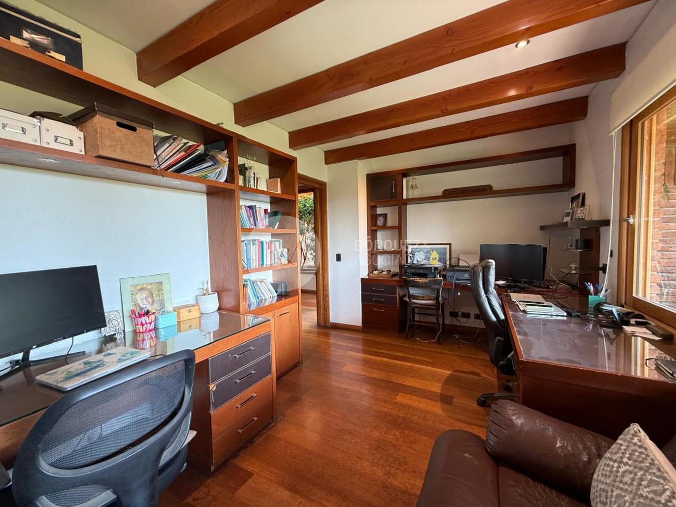 En el segundo nivel, destaca un doble escritorio y un gran dormitorio principal con terraza, vista a la cordillera, doble walk-in closet y baño de mármol con jacuzzi.